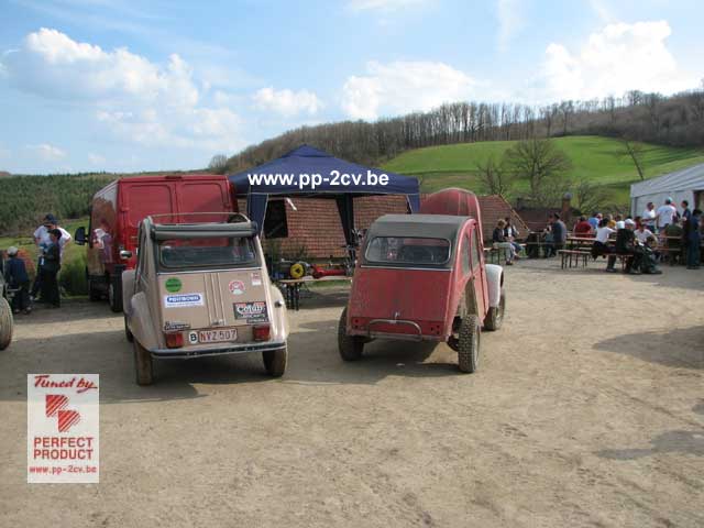 Voilà ..je suis arrivé à 8h30 au TT2cv 07/04/2007 avec mon copain Bernard Guillot " BG "et.ma nouvelle 2cv 4x4 ( désolé pour la peinture et les finitions ...) zéro mètre parcouru...comme cela a souvent été le cas dans d'autres situations : courses des 24 hrs 2cv Spa Francorchamps ...mais avec moins de pression / stress / challenge .....
