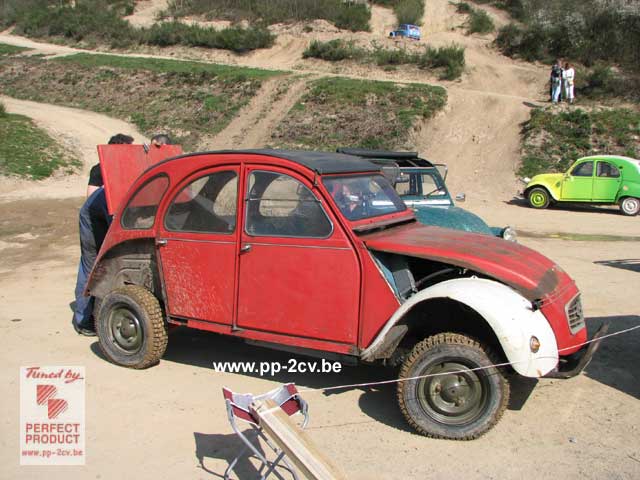 Voilà ..je suis arrivé à 8h30 au TT2cv 07/04/2007 avec mon copain Bernard Guillot " BG "et.ma nouvelle 2cv 4x4 ( désolé pour la peinture et les finitions ...) zéro mètre parcouru...comme cela a souvent été le cas dans d'autres situations : courses des 24 hrs 2cv Spa Francorchamps ...mais avec moins de pression / stress / challenge .....